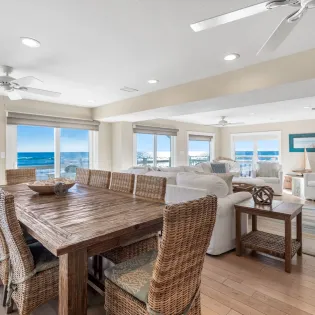 - Dining for 10 plus breakfast bar seating for 4 with panoramic Gulf Views