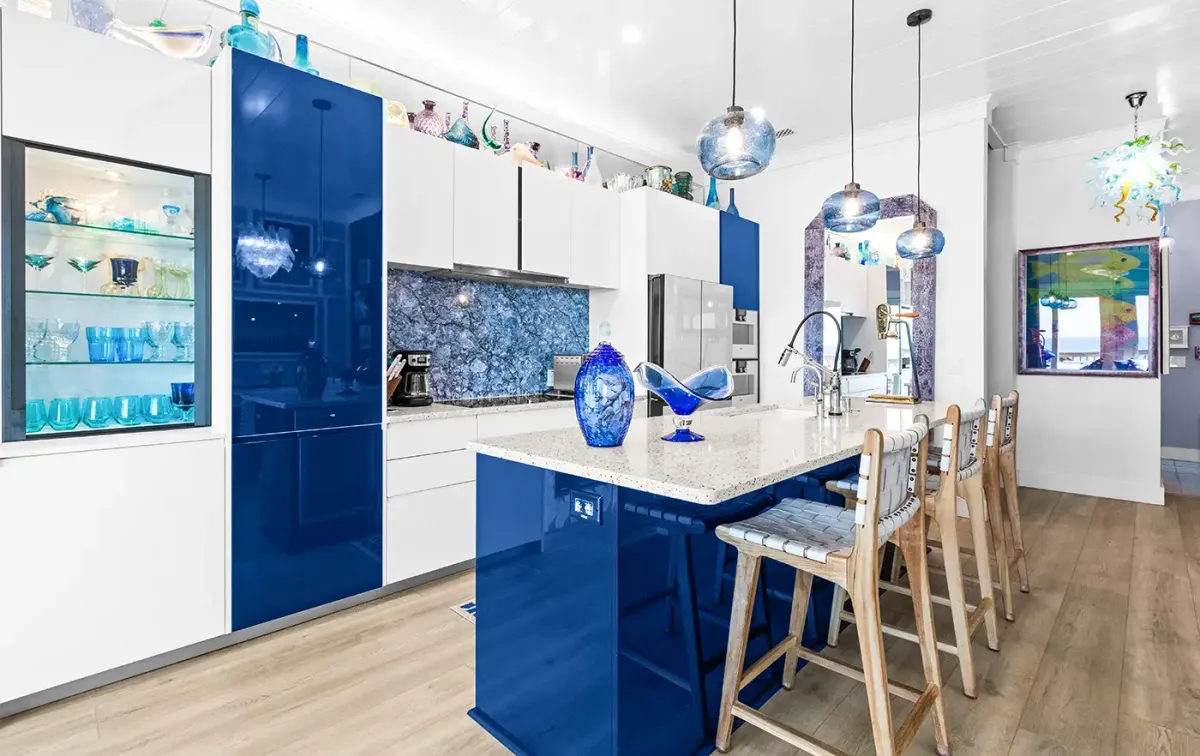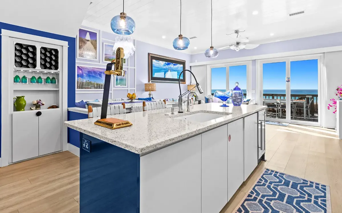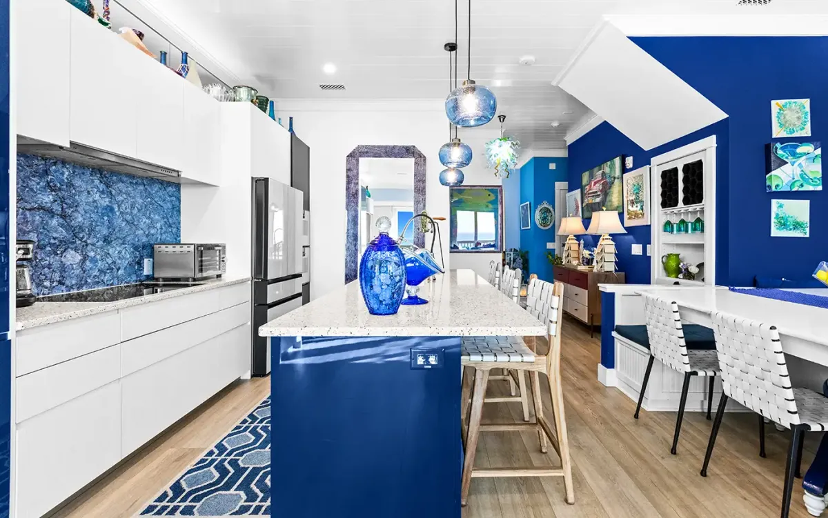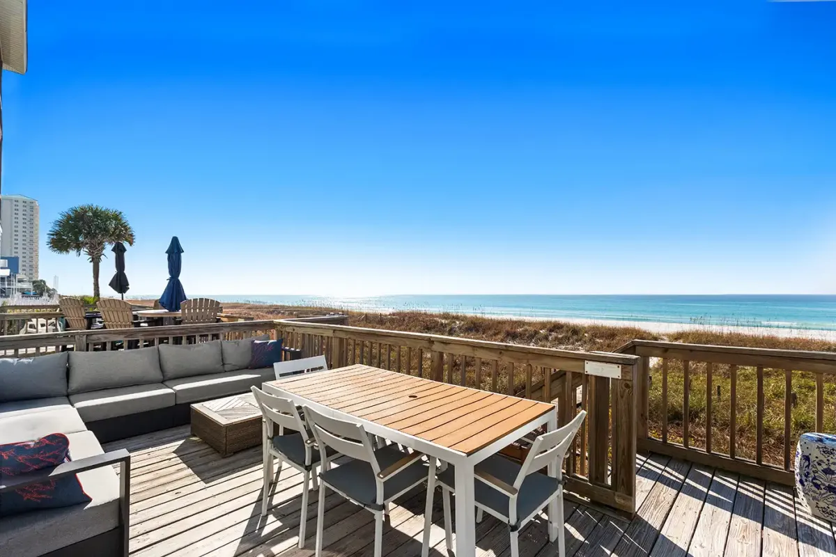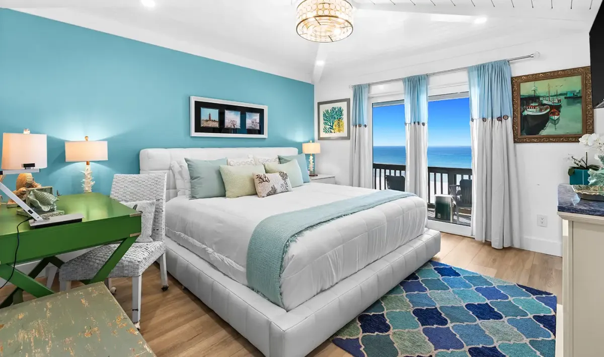 Relax and find your muse at Memories at the Seashore, our 4 bedroom, 4.5 bath Gulf front townhome only 8 minutes to Pier Park. This designer home is bathed in color, design, and natural light to create an atmosphere inspired by the tranquil blue waters just outside your door.