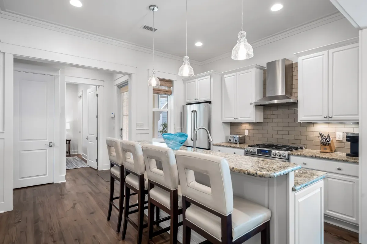 Need to work while on 30A? A built-in desk and chair are available near the dining table in a semi-private nook. The whole home WIFI ensures no missing a Zoom call, unless you want to.