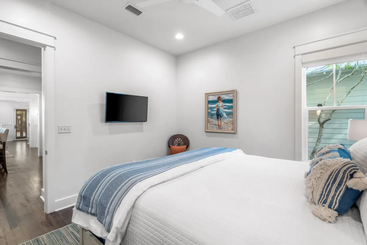 Sanctuary by the Sea is a classic beach retreat with all the luxuries imaginable in a WaterColor Vacation. Thoughtfully decorated in a classic, comfortable style to ensure your crew will be able to enjoy every moment together. Before entering the home, you're greeted with a furnished screened-in front porch - a cool way to enjoy your morning outside complete with ceiling fan! Perfect for dropping off beach bags on your way in, or chatting with a beverage in hand, taking in the beautiful surroundings. Inside the home, crisp, clean interiors await along with hardwood floors throughout!
