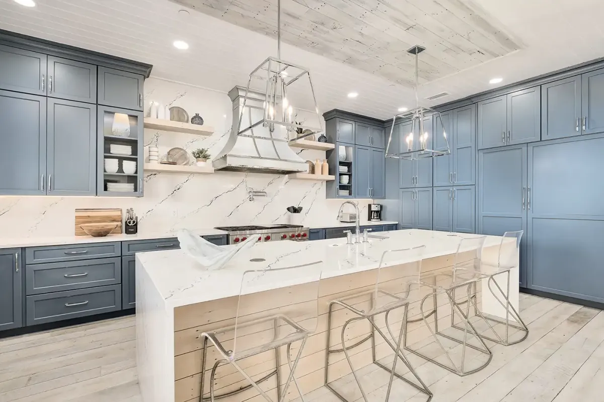 - 2nd Floor gourmet kitchen with high end appliances, separate expansive bar with seating and color-changing LED lights, and large kitchen island with additional seating. It's party time every night!