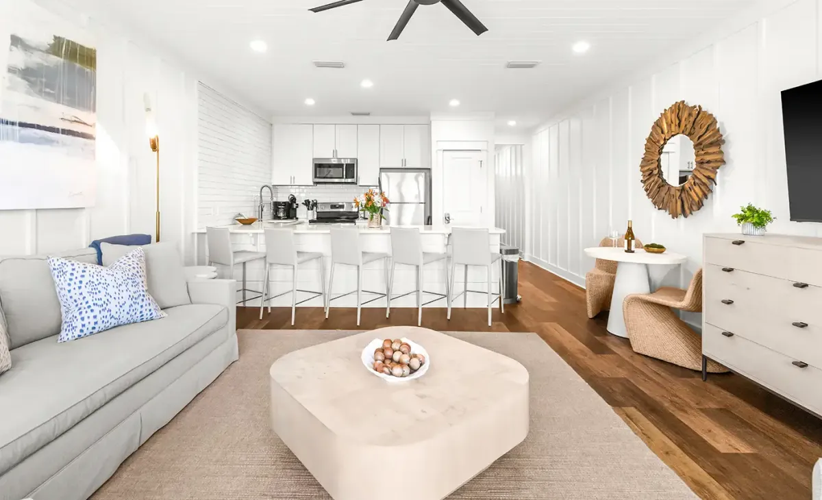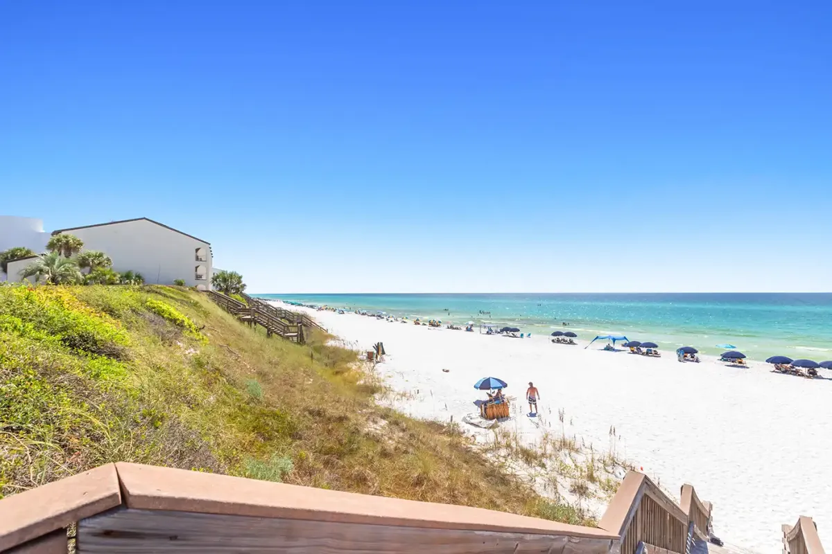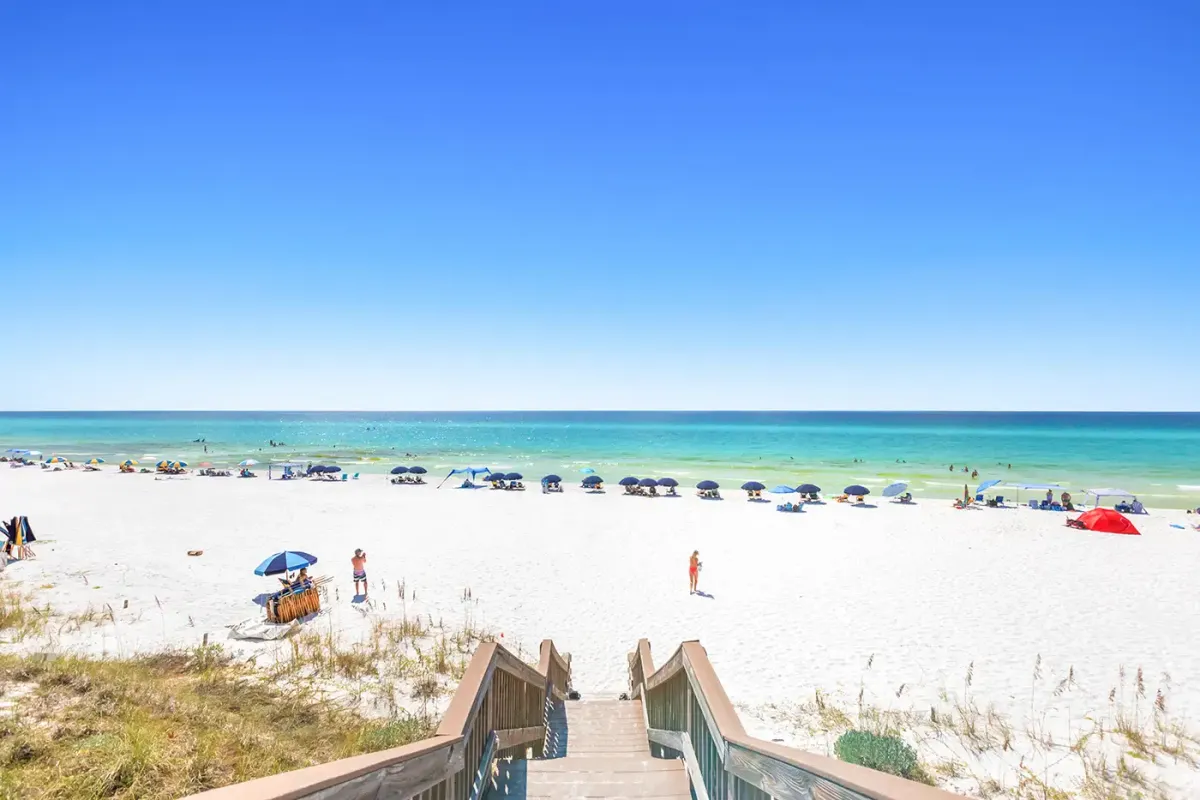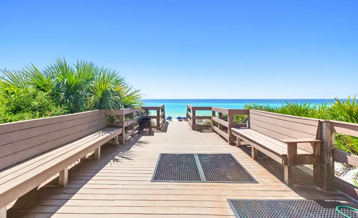 Unwind in comfort at The Palms, a renovated retreat in The Palms at Seagrove. With a community pool footsteps way, a private community beach access 65 footsteps from the condo, stylish and renovated interiors, and complimentary Taxi bikes, this designer condo is the perfect retreat for your family.