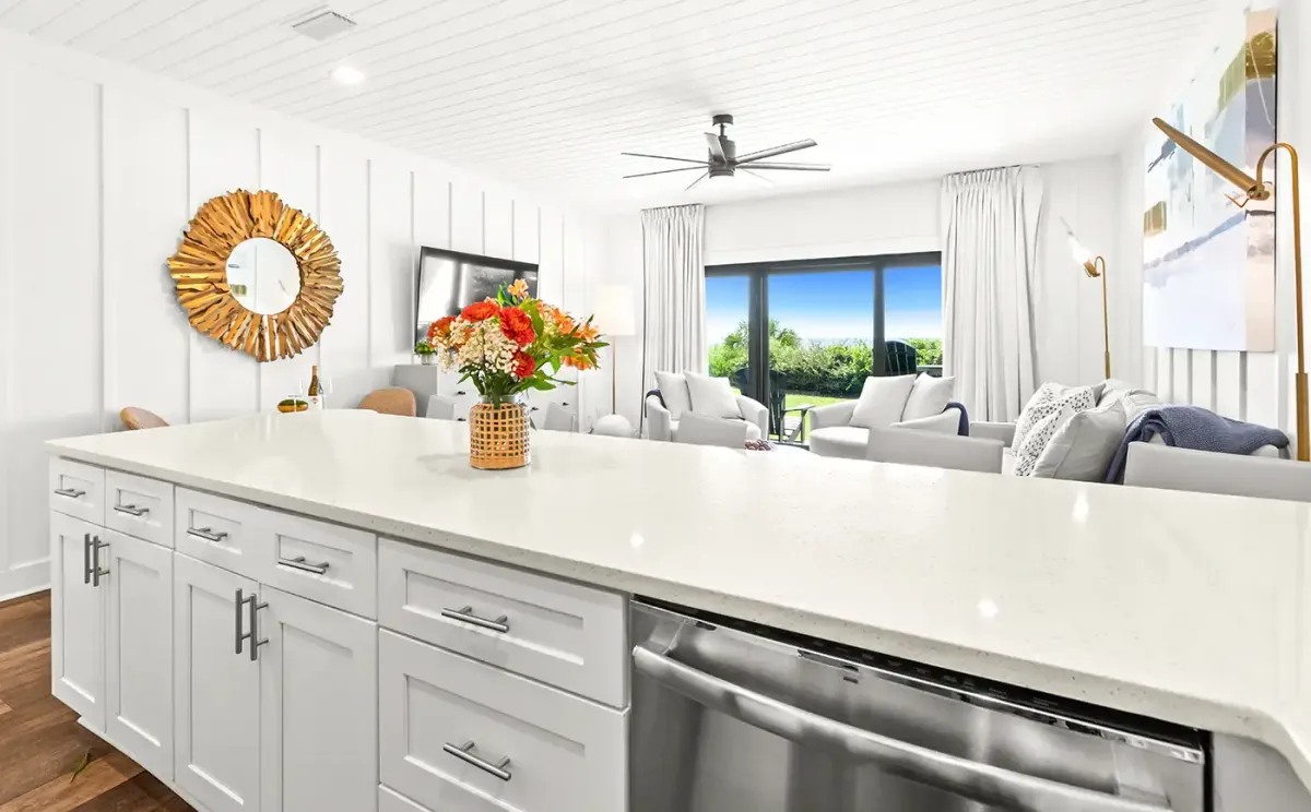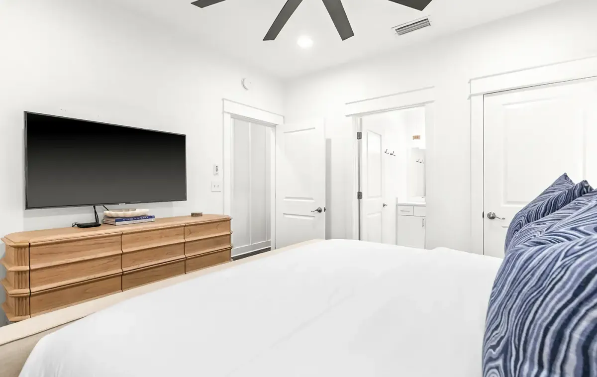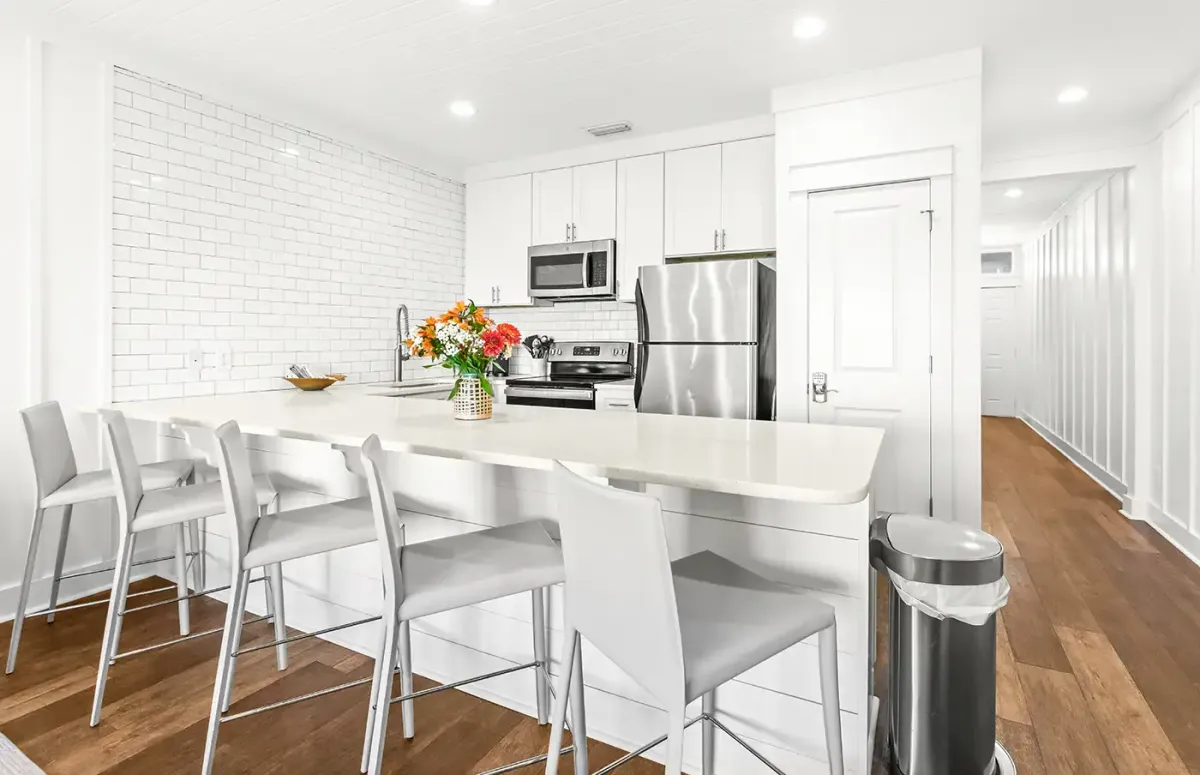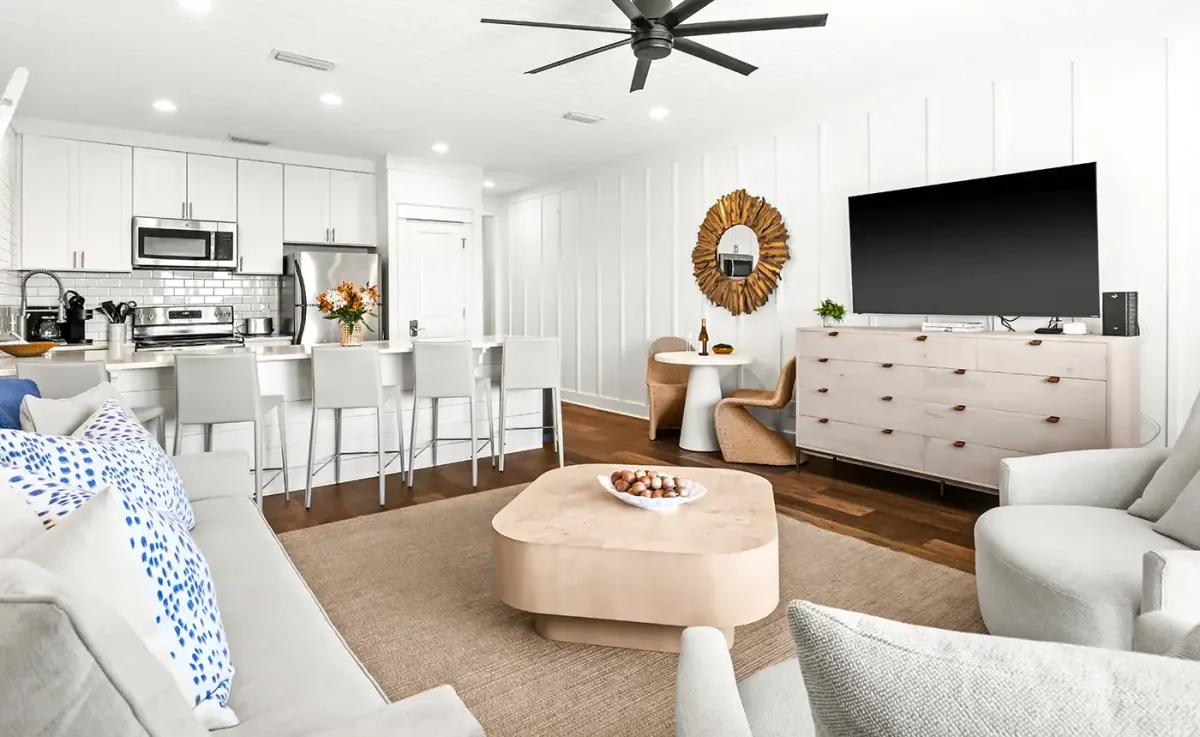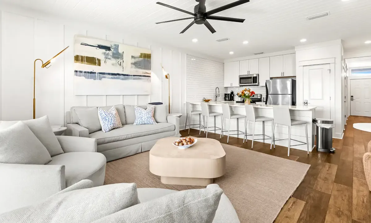 Unwind in comfort at The Palms, a renovated retreat in The Palms at Seagrove. With a community pool footsteps way, a private community beach access 65 footsteps from the condo, stylish and renovated interiors, and complimentary Taxi bikes, this designer condo is the perfect retreat for your family.